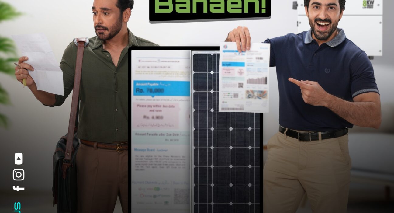 One person stressed after receiving a heavy bill, and the other proudly showing his reduced bill after installing Ziewnic Solar. Between them stands the real solution — smart, powerful, and reliable solar energy.